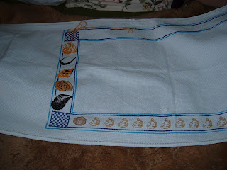 Lo schema a punto croce è tratto da un annoso volumetto pubblicato da Rakam che ho elaborato assemblando due sampler distinti per adattarlo ad una striscia in tela Aida di 180 cm abbandonata in un cassetto, dopo la mia "conversione" al punto croce su lino, destinata a non so quale lavoro.