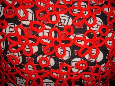 Come si può notare si tratta di una realizzazione di fiori ed anellini all'uncinetto, in rosso naturalmente, perché come ho già detto è questo ill mio colore preferito.