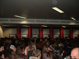 Questa è la folla che ci si è presentata alle 9.30 al nostro arrivo. Laggiù, proprio di fronte, è possibile immaginare Berty: è in coda mentre cerca di conquistare i biglietti d'ingresso.