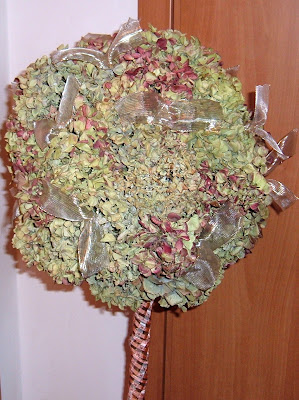 Qualche ora fa ho terminato due composizioni floreali delle tre che volevo realizzare con le ortensie essiccate. L'ultima, se riuscirò a riperire ancora materia prima cioè altri fiori, la realizzerò quanto prima.