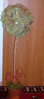 Qualche ora fa ho terminato due composizioni floreali delle tre che volevo realizzare con le ortensie essiccate. L'ultima, se riuscirò a riperire ancora materia prima cioè altri fiori, la realizzerò quanto prima.
