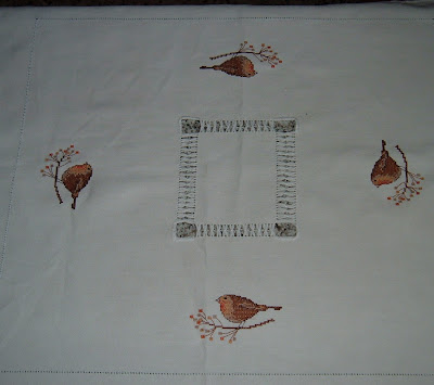 Ne ho trovato un surrogato. Pettirossi in punta d'ago, altrettanto graziosi, in memoria di quelli che animavano il giardino davanti a casa: sono diventati due tendine ed una tovaglietta invernali.
