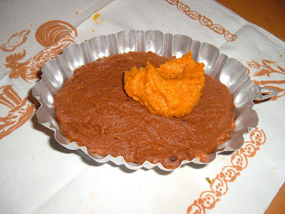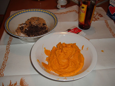 Non mi sono persa d'animo ed ho utilizzato la restante zucca, che avevo cotto per altre preparazioni, per il composto più chiaro che ho inventato al momento.