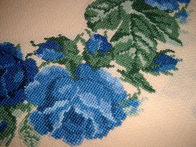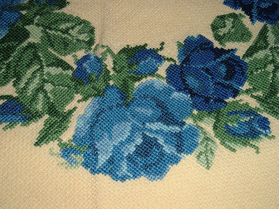Riscoprirlo è stato un ritorno al passato che mi ha fatto quasi commuovere. Ormai è richiuso in un cassetto: troppo datato il tessuto una pietosa tela Aida di color giallino che in foto non si apprezza; un retro penoso: mi ci vorranno anni prima di scoprire la tecnica del rovescio perfetto; un vistosissimo errore nel ricamo; un bordo all'uncinetto troppo alto, di un colore insopportabile...