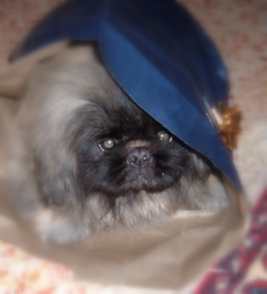 Gigio pacchetto regalo? No, la birba si è impossessata di un sacchetto per impacchettare libri, regalo di S. Lucia, e non l'ha più mollato. Non potendo regalare il cane ho cambiato l'incarto...