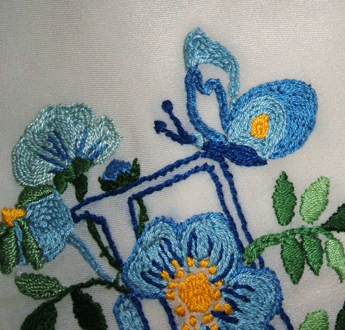 Siccome ho titolato il mio post "farfalle" vi faccio anche vedere un mio lontano ricamo su una sciarpetta di seta.