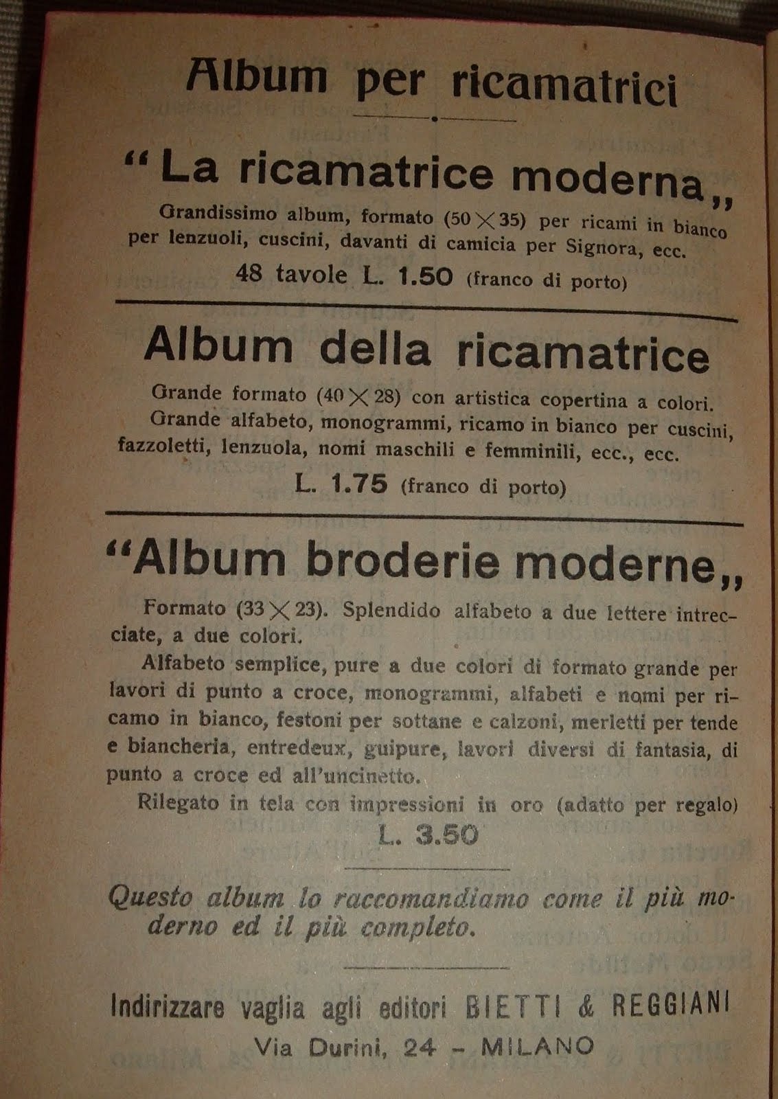 RispondiElimina...e come sarebbe bello poter mettere le mani su quegli "Album per ricamatrici moderne"...