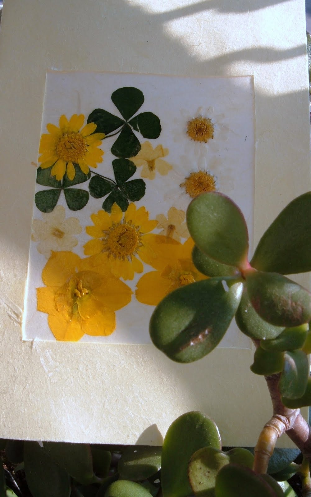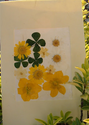 Così armata di riga, squadra, cutter, colla, pennello e delicatissimi fiori essiccati (anche questi non sono i "miei fiori" purtroppo) ho creato un bigliettino floreale.