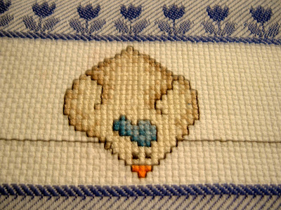 Al contrario quest'altro strofinaccio non va. Vuoi che i colori proposti non mi piacciono, vuoi i mezzi punti di cui è zeppo lo schema, metto qualche crocetta e lo accantono. Per ora rimane un wip.