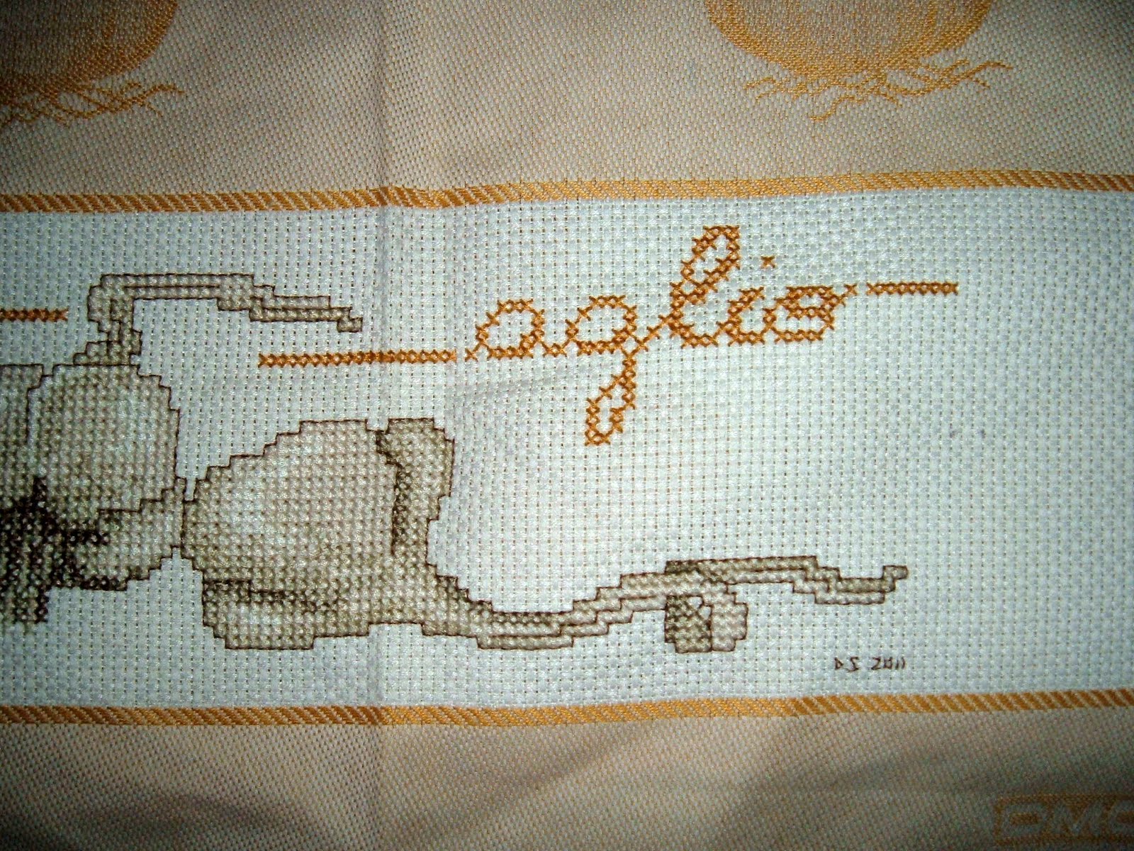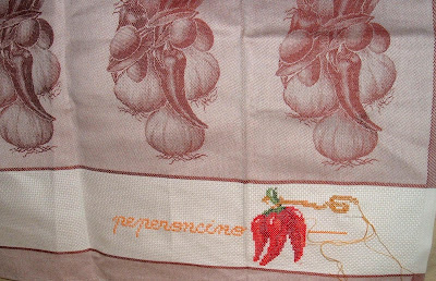 Per il Sal "smaltimento ricamabili ecco un particolare dello strofinaccio con peperoncino: il wip di questa tappa.