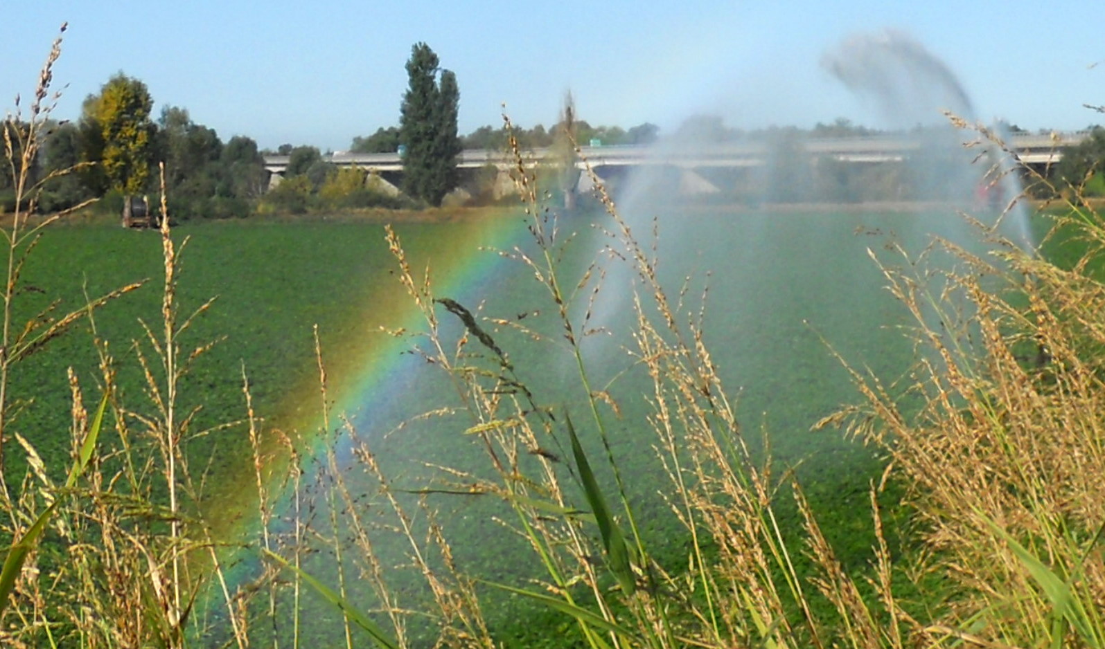 Le "piogge" d'irrigazione che regalano un arcobaleno.