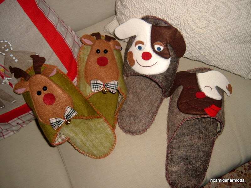 Le spiritose pantofoline con la renna sono per me, quelle con il cane per mio marito.