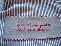 Hai fatto bene a ricamarlo con queste gallinelle...sono troppo simpatiche!!!!