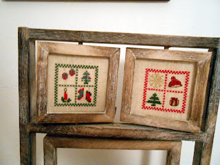 Da tempo cercavo qualche ricamino adatto per questo strano porta-foto e quando mi sono imbattuta negli schemi "serie de Noel" 2007 ho pensato che fossero proprio a sua misura. Grazie Véronique.