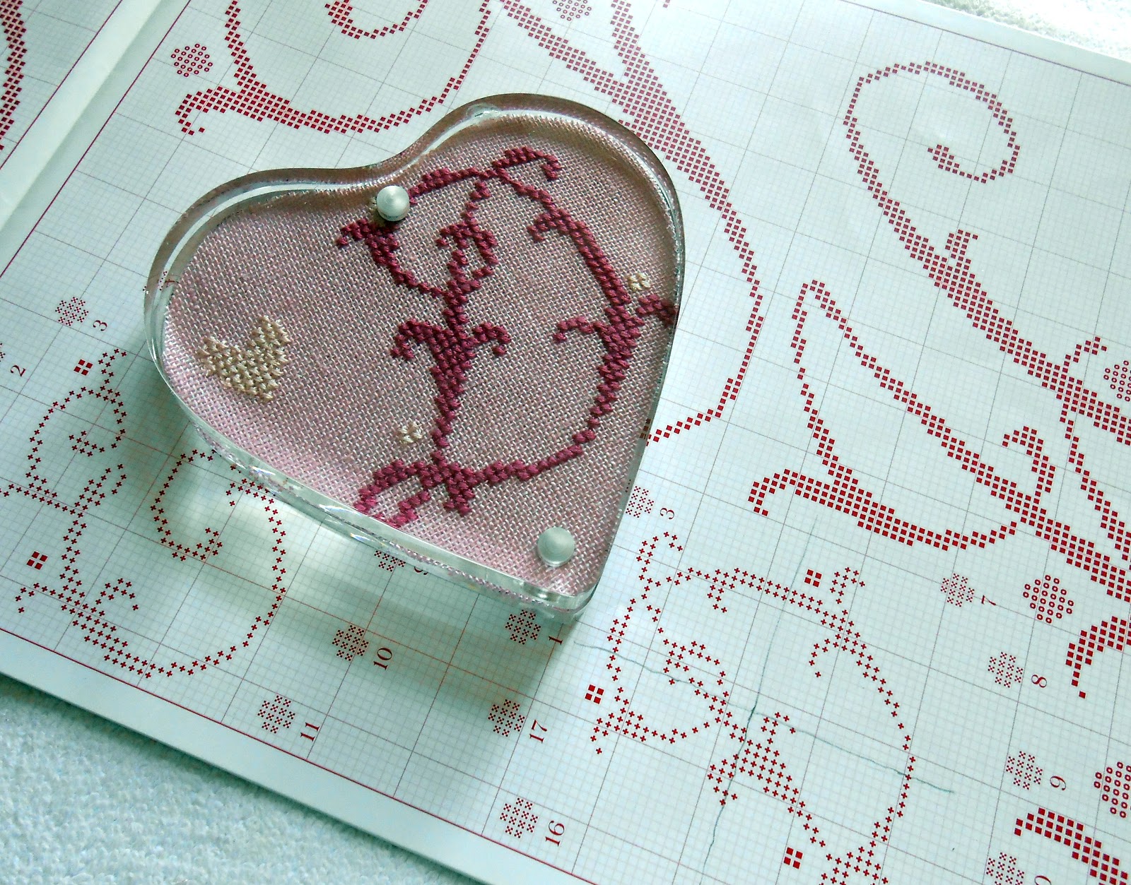 Mi sono proprio divertita a crocettare i fermacarte porta-foto; ora poi che, per rinforzare il ricamo, ho usato la fliselina non ho avuto problemi a ritagliare l'orlo e il lino non si è sfilato.
