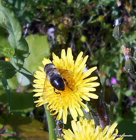 Anche i garofani ricamati  (free di Ellen Maurer-Stroh) hanno attratto un insetto; non certo il loro profumo o il loro realismo quanto il bianco,  abbagliante sotto il sole, della tela Aida.