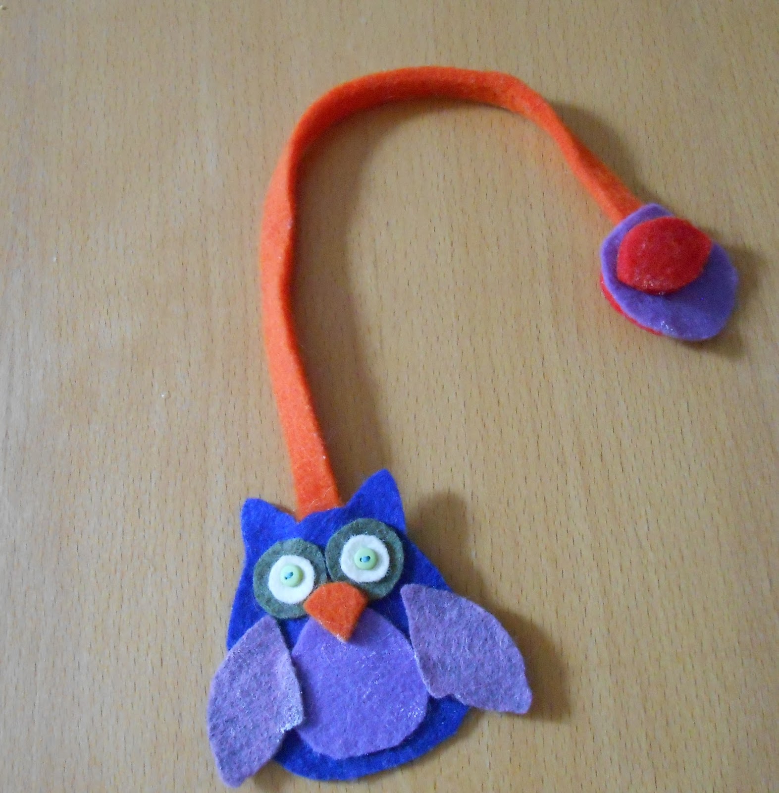 Questi ultimi sono un esperimento con il feltro di qualche anno fa. Anche per questi mi sono ispirata sul web: un micio e un gufetto multicolori.